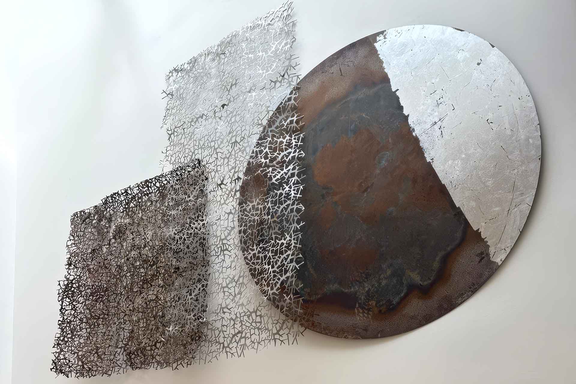I labirinti del metallo: facile considerarli semplici intrecci formali, strutture decorative o esercizi di lavorazione. Ma è proprio in queste configurazioni che la materia sembra smarrire la sua funzione originaria per assumere una dimensione più complessa. I percorsi si aggrovigliano, si interrompono, si riprendono, come accade nei pensieri e nelle esperienze interiori. Le strutture si sviluppano in trame che non conducono a un’unica direzione, ma suggeriscono possibilità, deviazioni, ritorni. In queste forme si percepisce la tensione tra controllo e perdita di orientamento, tra costruzione e disorientamento, come se il metallo stesso trattenesse e restituisse il movimento di una ricerca continua.